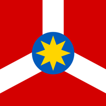 Horizontally divided red over blue by a narrow white stripe, overall the