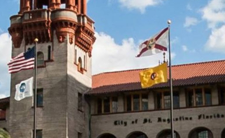 The second unidentified flag, the one positioned below the state flag of Florida, is indeed the flag of St. Augustine as Peter had speculated. You already have an established FOTW page for the city.