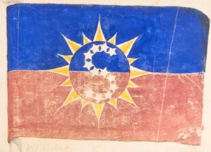 • South Carolina Sovereignty Flag - red with 15 white stars (perhaps this is a poor description of the famous flag of the day that was red with a blue St. George style cross bearing 15 white stars [center one bigger] and a white Palmetto Tree and Crescent in the canton).