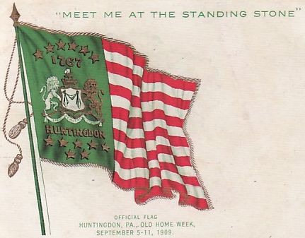 A poorer version of the flag, but with better colors, can be seen on this website: https://www.worthpoint.com/worthopedia/huntingdon-pa-1909-vintage-flag-1895877331