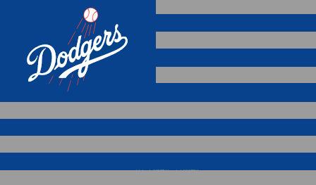 The First example is a Los Angeles Dodgers fan Stars and Stripes Flag that features the Dodger's jersey logo in the blue canton with a white field of stars. The second is a Los Angeles Dodgers fan Stars and Stripes Flag that features the Dodger's jersey logo in the blue canton completely replacing the white field of stars.