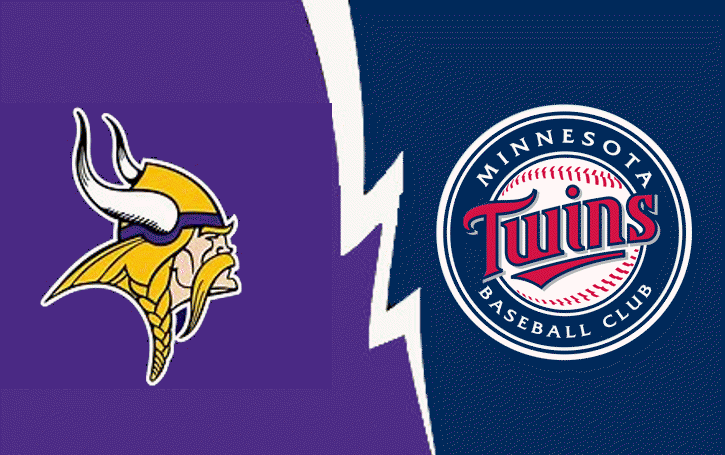 These popular flags allow fan support for both the hometown professional football team and the professional baseball team with a single flag, in this case for the Minnesota Vikings and the Minnesota Twins.