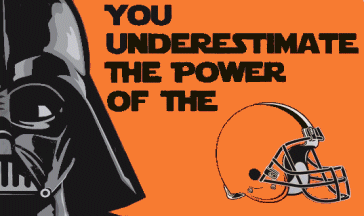 This flag is a cross between a Cleveland Browns fan flag and Star Wars fan flag. A similar flag is being made for most NFL teams. The flag has a profile of Star Wars villain Darth Vader on the hoist and the team's logo on the fly. In between are the words "YOU UNDERESTIMATE THE POWER OF THE" in one of the team's primary colors on a field of another of the team's colors, with the result being a vision of Darth Vader saying "You underestimate the power of the [NFL team name]."